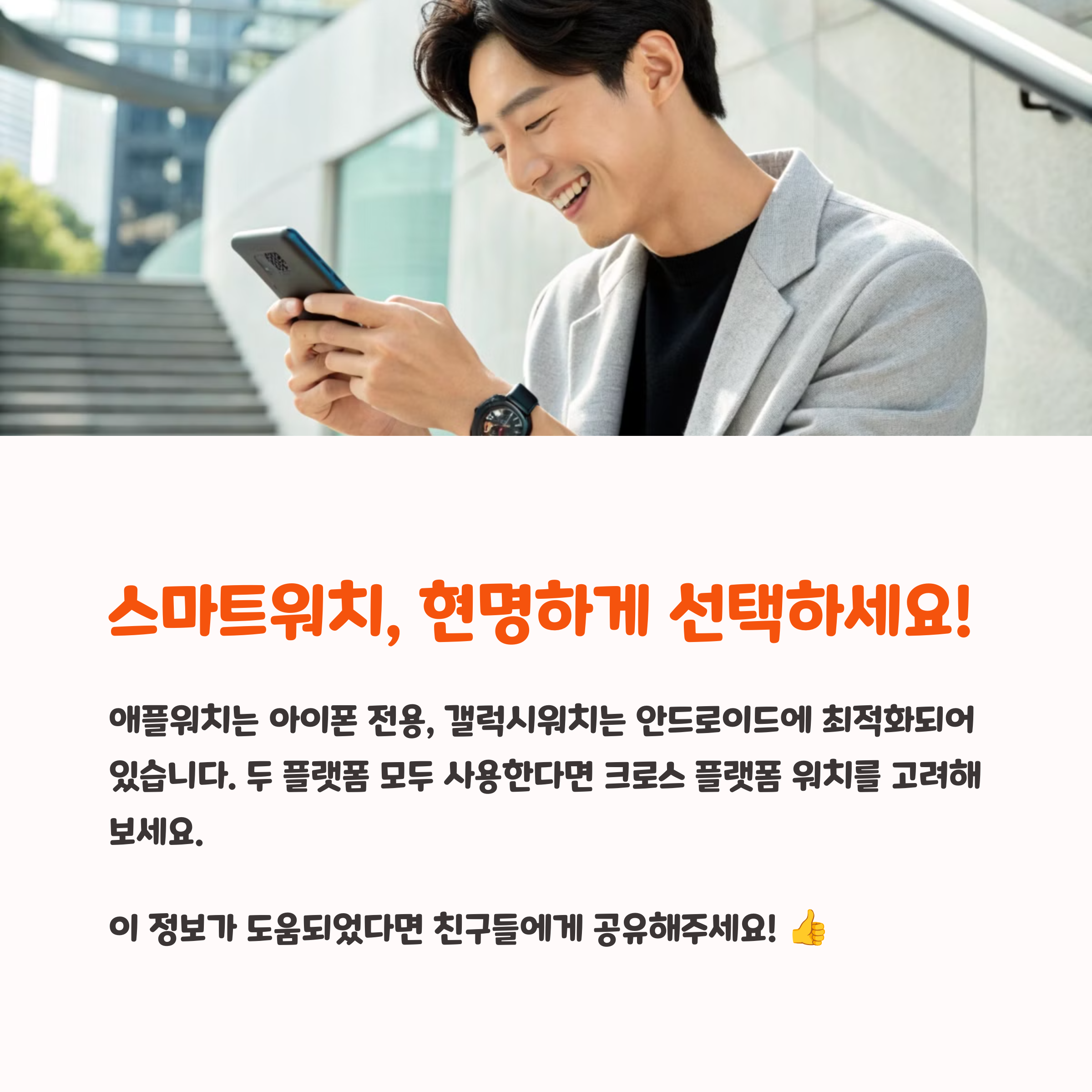 기기를 바꿀 계획이 있다면, 워치보다 스마트폰 쪽을 먼저 고민해보는 것도 좋아요. 왜냐면 워치는 스마트폰이 없으면 제 기능을 다 못 하니까요. 스마트폰을 바꾸지 않는다면, 호환성 높은 워치 선택이 가장 현명하겠죠. 📱⌚