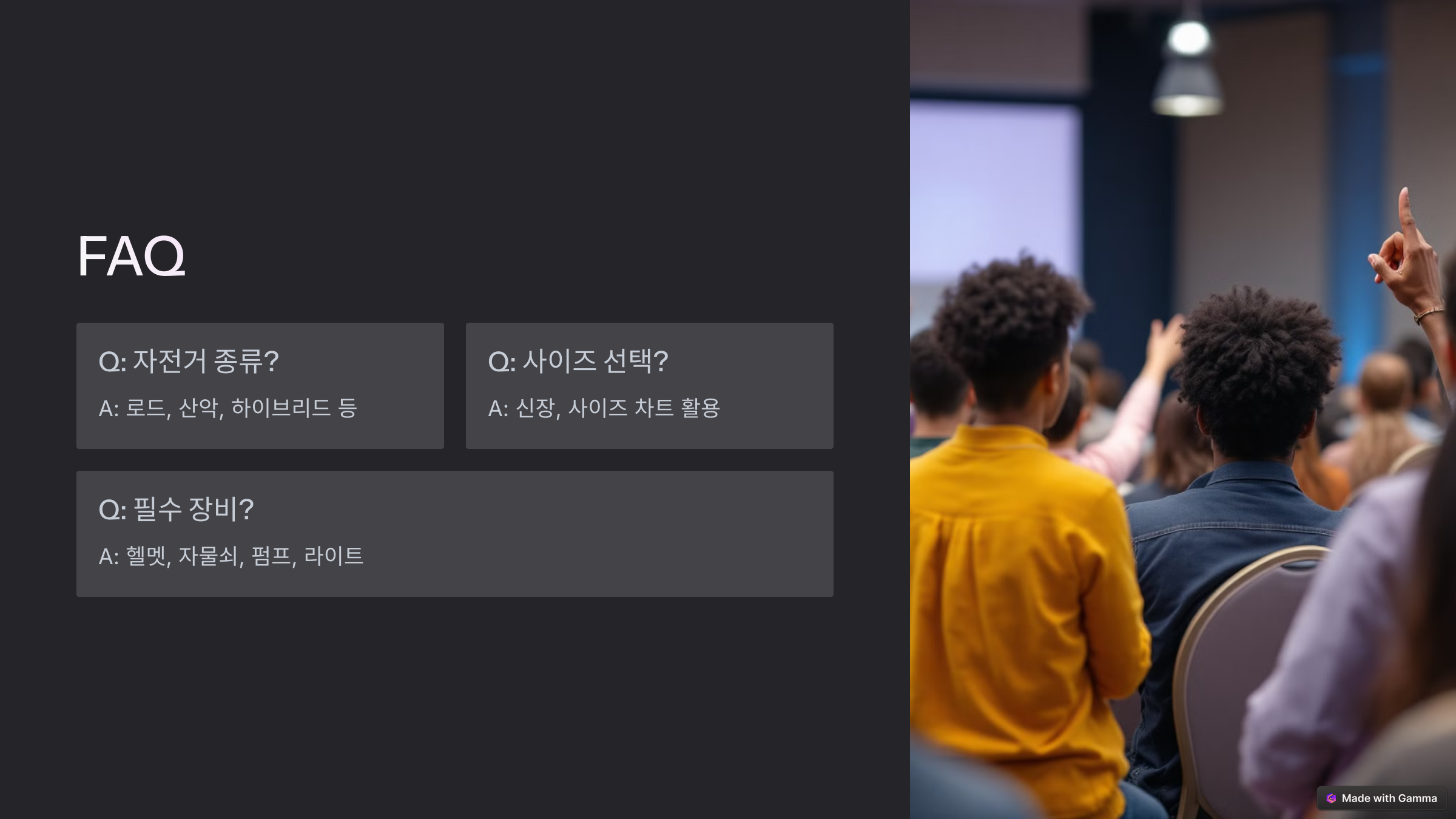 🚴♂️ 이제 자전거에 대한 궁금한 점을 해결하는 시간! 자주 묻는 질문(FAQ)도 확인해보세요! ❓